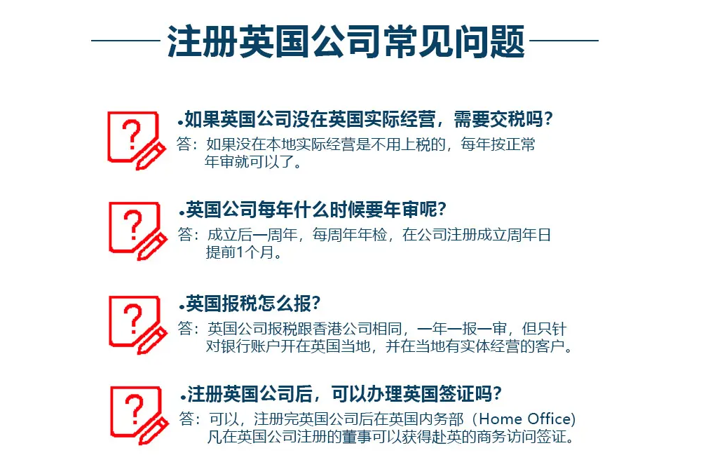 除了以上注冊英國公司的資料和流程,英國公司注冊后,還需要進(jìn)行年審。不按時年審的,要罰款,或者先發(fā)警告文書。如果公司在90天內(nèi)未能及時辦理,公司將收到公司已注銷的通知,沒有任何反駁的機會,被強制注銷的公司法人將被列入黑名單,影響誠信記錄。以上是注冊英國公司的信息、流程等細(xì)節(jié)。