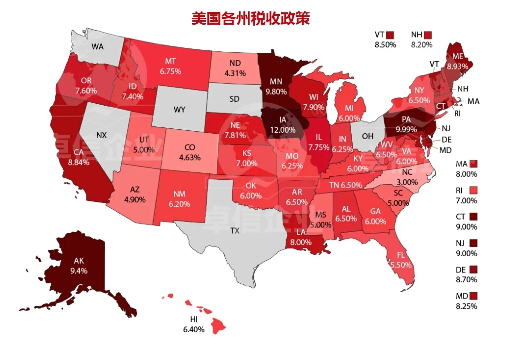 美國有50個(gè)州。出于政策原因,每個(gè)州對企業(yè)的稅率都不一樣。所以在注冊美國公司的時(shí)候,選擇合適的辦公地點(diǎn),對于合理節(jié)稅會有很大的幫助。